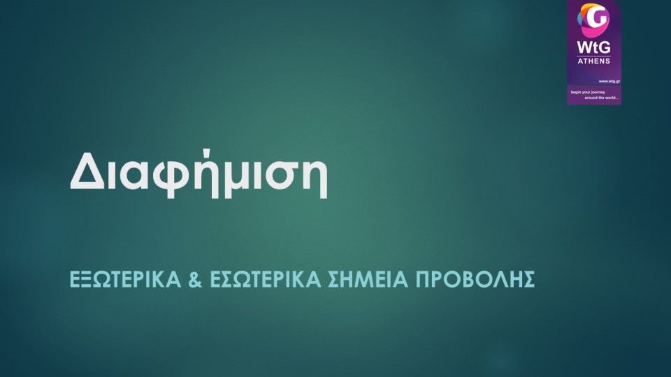 – Στους εκθεσιακούς και συνεδριακούς χώρους: Stand, banners, ψηφιακές οθόνες, branding σε κοινόχρηστους χώρους.