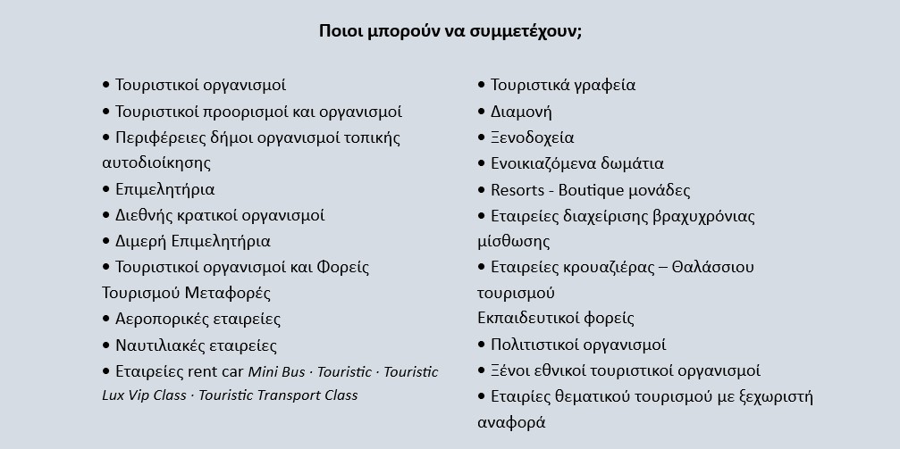 -Πρόσβαση σε οργανωμένα δίκτυα επαγγελματιών και φορέων του τουριστικού κλάδου.
